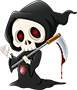 The font is a little too fat and bouncy, and the shading effect highlights that further, making it look friendly. Something sharper -- either sharp edges or a sharp metal texture or just a sharp flat color -- could help.